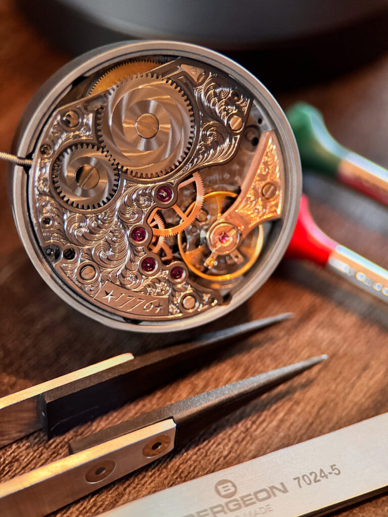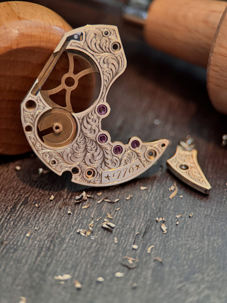 Certain collections at 1776 Atelier are distinguished by intricate details that elevate them to the pinnacle of horological artistry. These timepieces showcase hand-crafted watch hands or full hand engraved movements. Paired with classic finishing techniques such as hand applied anglage, pearlage, black polishing, thermal bluing, and snailing, circle & sunburst graining- we strive to employ the highest levels of finishing available at our price points anywhere globally. These details elevate the visual experience through a harmonious interplay of depth, texture, and light, revealing the artistry in every meticulously crafted finish. Remarkably, we offer these extraordinary features at a substantial value compared to larger European brands, ensuring that luxury does not come with an inflated price tag. For those seeking a truly personalized touch, we also provide the opportunity for completely bespoke watch creations, allowing you to collaborate with our artisans to design a timepiece that reflects your individual style and preferences. At 1776 Atelier, we combine artistry, tradition, and exceptional value to deliver a luxury experience like no other.