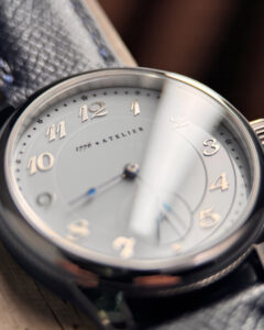 Every Sagamore Hill timepiece is housed in a modern 40 mm stainless steel case and fitted with our own custom enamel dial, designed specifically for this collection. Each dial features raised Breguet numerals, offering a crisp, architectural contrast against the warmth of the antique movement beneath. This fusion of eras captures what makes a true conversion exceptional: a deep respect for the past, paired with design choices that make the watch feel purposeful and relevant today.
