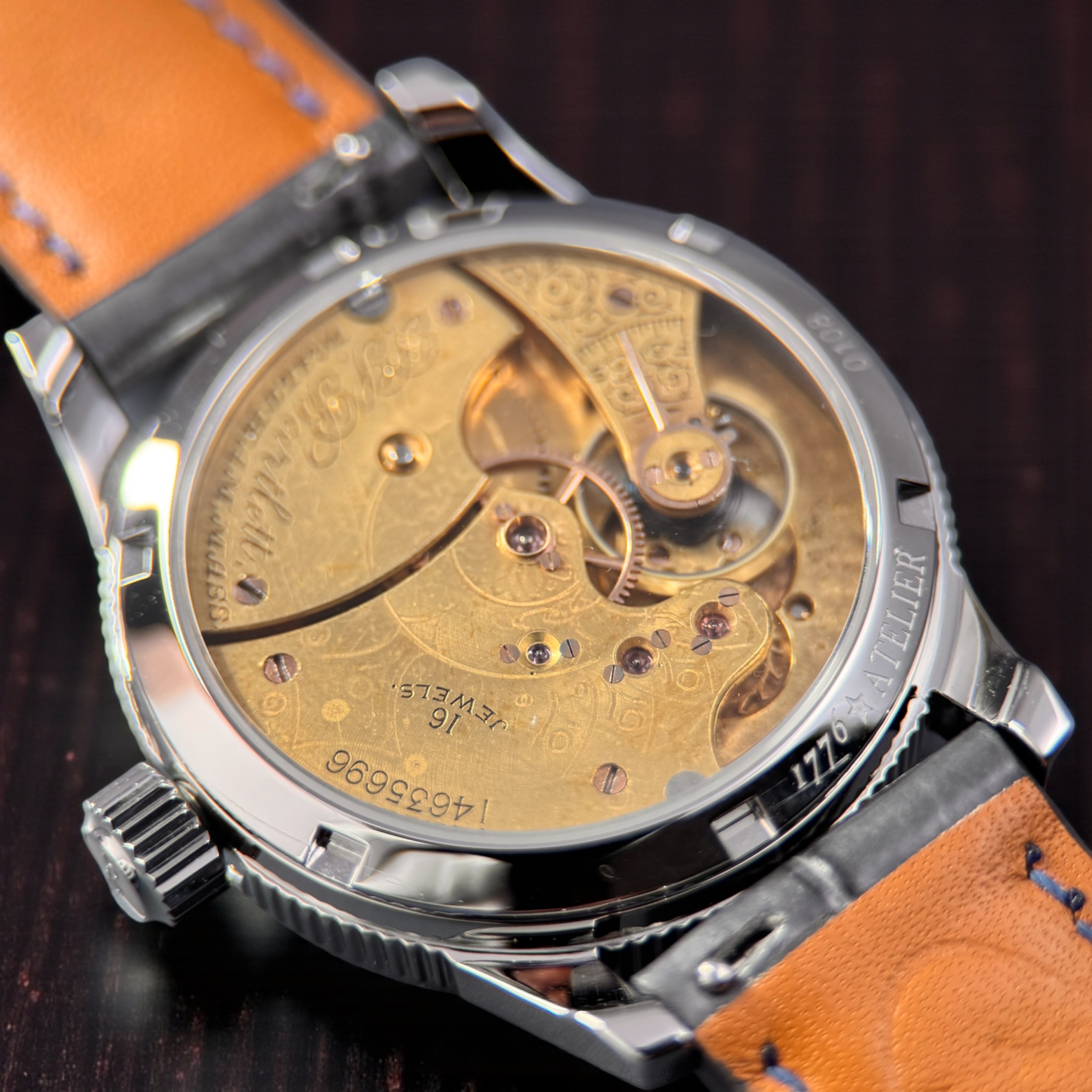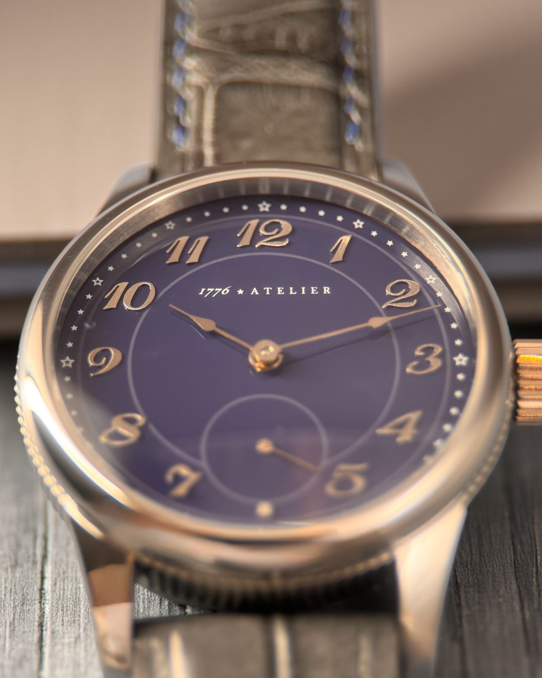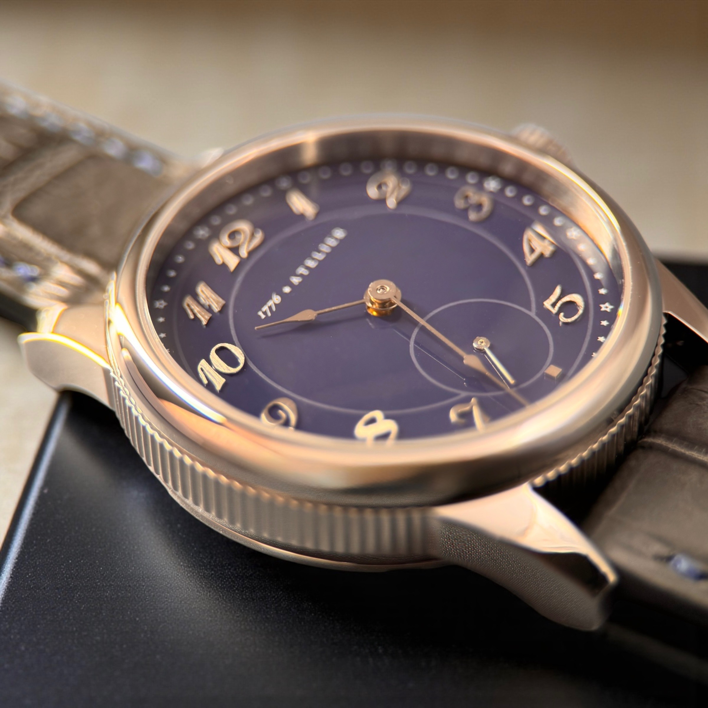 This historic Waltham timepiece was originally completed in 1906 in Waltham, Massachusetts, and features one of the company’s proprietary 15-jewel movements, beautifully finished with intricate damaskeening beneath a traditional three-quarter plate. The original hands have been carefully preserved and restored using thermal bluing—a precise, hand-applied technique that enhances both their deep hue and corrosion resistance. The original dial has been replaced with our own proprietary enamel dial—one of the defining trademarks of our conversion work and a key detail that sets our pieces apart from other offerings in the marketplace. Raised Breguet numerals, finished in a brushed metallic tone, provide contrast and dimension, echoing the sheen and texture of the stainless steel case while introducing subtle modernity. Twelve stars mark the hours around the numerals, while a thirteenth, embedded within our signature, serves as a quiet tribute to the original thirteen colonies and the founding ideals of 1776. To enrich the enamel’s surface, we have introduced delicate etching around the subdial and central area—an understated texture that gently disrupts the luster, adding depth and visual interest without overwhelming the design. Housed in a 40 mm surgical-grade 316L stainless steel conversion case, the watch offers an ideal fit for nearly any wrist. With both crown and caseback gaskets, it is water-resistant to 50 meters, though we recommend avoiding prolonged water exposure. Fully serviced and thoughtfully restored, this timepiece bridges over a century of American craftsmanship and is ready to accompany you on your next chapter.